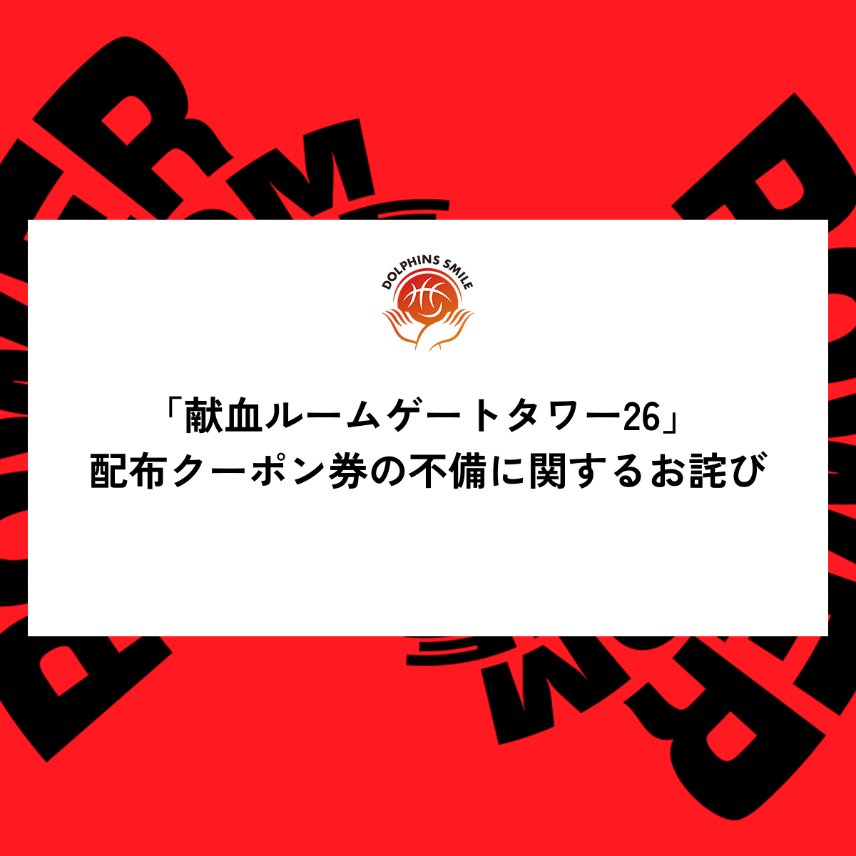 「献血ルームゲートタワー26」 配布クーポン券の不備に関するお詫び