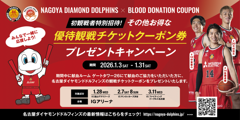今シーズンも実施!献血ルームゲートタワー26にて「名古屋ダイヤモンドドルフィンズ展」実施のお知らせ